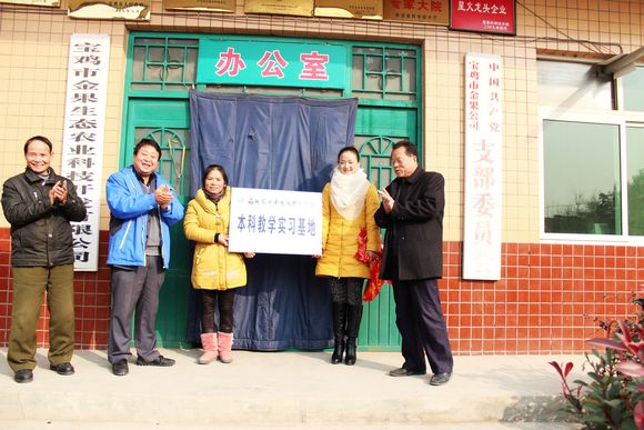 为了进一步提高学生教学实践能力,不断拓宽实践教学空间,在学院的积极努力下,与宝鸡金果生态农业科技开发有限公司建立了教学实习基地。11月13日上午,教学实习基地授牌仪式在宝鸡市眉县举行。学院副院长海江波、宝鸡金果生态农业科技开发有限公司白智勇董事长参加了授牌仪式。