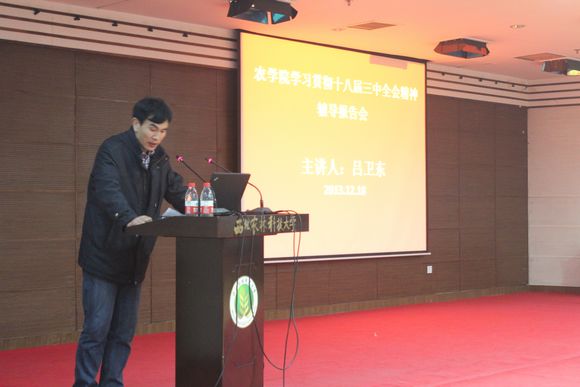 为了进一步深入学习贯彻党的十八届三中全会精神,落实中央关于全面深化改革的重大决策部署,js555888金沙老品牌党委于12月18日晚7:30 在南校区国际交流中心208会议室举办学习贯彻十八届三中全会精神辅导报告会。大会特邀党委宣传部部长吕卫东教授为广大师生做专题辅导报告会,会议由党委副书记马志宏主持,学院党政领导,教职工党员、本科生和研究生党员约200余人参加了报告会。