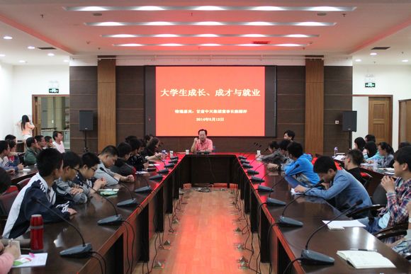 5月12日晚,甘肃中天羊业股份有限公司董事长、甘肃中天药业有限责任公司董事长、91届知名校友陈耀祥先生应邀与js555888金沙老品牌2011级学生代表在南校区国际交流中心210会议座谈。座谈的主题为“大学生成长、成才与就业”,座谈会由党委副书记马志宏主持。