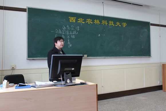 青年教师李文强正在进行多媒体教学
