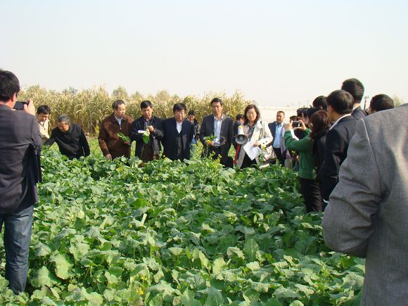 10月19日与会代表参观了我校在靖边县原种场布置的饲料油菜播期和品种筛选试验、大面积饲料油菜示范基地、靖边县北方牧业开发公司饲料油菜喂食现场。