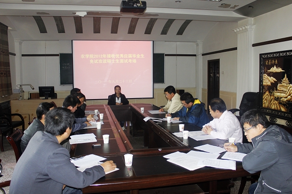 9月23日上午,金沙官网在南校区3211教室进行接收2012届优秀毕业本科生免试攻读硕士学位复试工作的专业复试科目考试;下午,所有考生在学院二层会议室参加了面试。