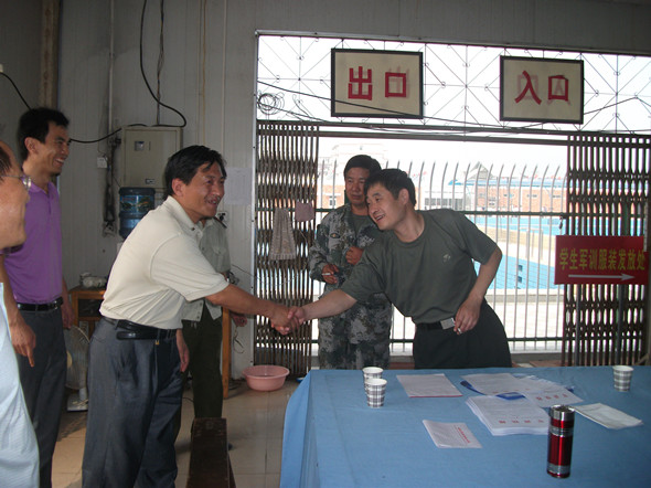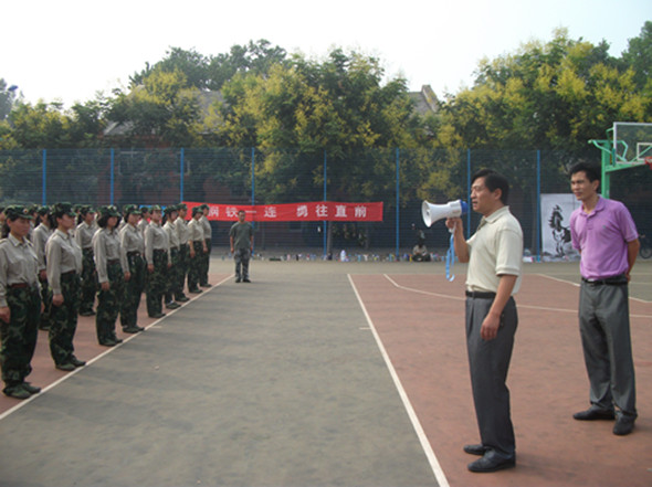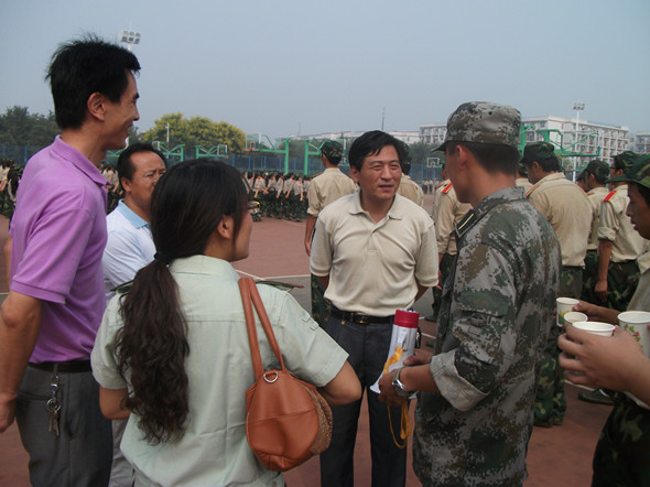 9月1日上午,金沙官网党委书记惠安堂,副院长杜世平,党委副书记马志宏一行三人冒着酷暑来到军训训练场,看望了正在参加军训的金沙官网2011级学生。