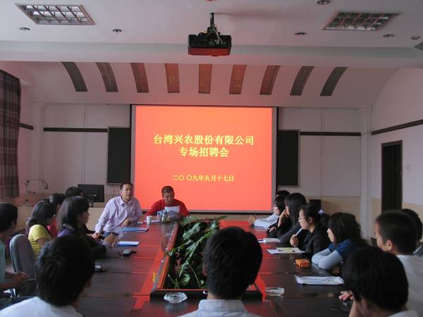 9月17日下午,金沙官网2010届本科毕业生首场招聘会在院办会议室举行,前来招聘的用人单位是台湾兴农股份有限公司,30余名学生参加了招聘会。