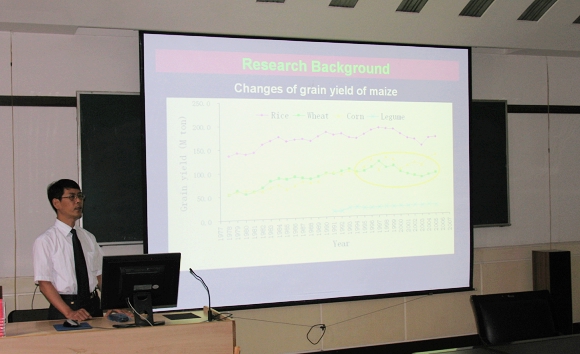 7月6日至7日,韩国首尔大学的郑大浩博士来金沙官网进行学术访问交流,郑大浩博士先后参观了学校农博园、院玉米试验站、玉米育种实验平台及相关的实验室。并应邀为金沙官网师生作了题为“分子标记与分子育种”和“玉米种质分子遗传多样性及中国与美洲玉米间的杂交种表现”的学术报告。郑大浩博士分别从分子标记的定义、类型、引物设计、MAS、QTLs分析及其应用,中美两国自交系遗传多样性、杂交种表现等方面进行了详细的报告;围绕玉米分子育种技术及发展趋势与金沙官网师生进行了广泛交流和深入探讨。