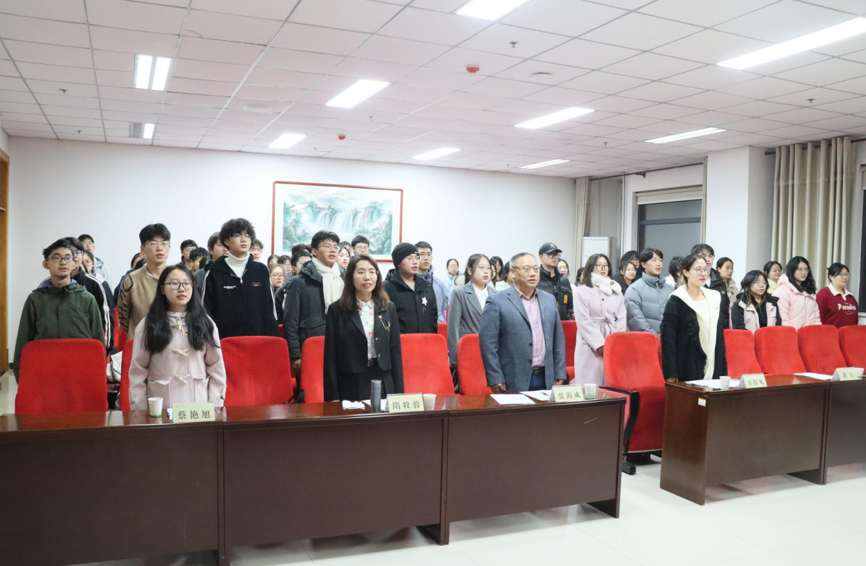 为深入学习贯彻党的二十届三中全会精神,加强学院青年思想建设,培养一批具有忠诚政治品格、浓厚家国情怀、扎实理论功底、突出能力素质的青年马克思主义者,11月22日,js555888金沙老品牌第一期“青马工程”开班仪式暨分团校第二期团课在js555888金沙老品牌报告厅顺利举行。js555888金沙老品牌党委书记张海成出席开班仪式,马克思主义学院副教授隋牧蓉受邀讲授第二期团课,辅导员王钰凡、蔡艳旭,团委学生会全体骨干、入党发展对象近80人参加开班仪式。仪式由学院团委副书记黄宾主持,在庄严的国歌声中仪式正式拉开帷幕。