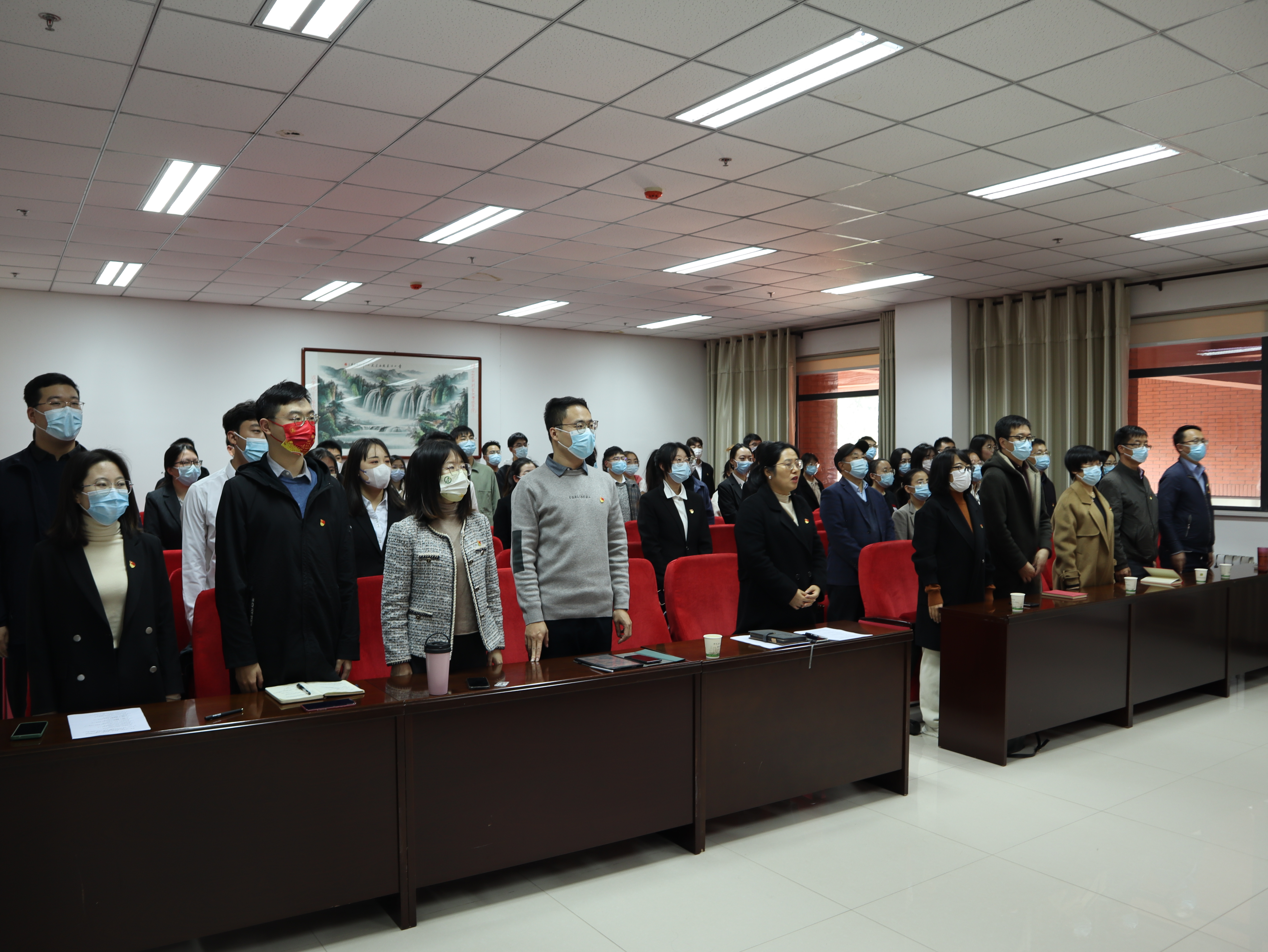 为深入学习贯彻党的二十大精神,巩固拓展党史学习教育成果,进一步增强党员党性修养,发挥党员模范作用,11月22日,js555888金沙老品牌在216会议室举行党员“亮身份·践承诺·树形象”主题实践活动启动仪式,学院党委副书记吴清华、各党支部书记、新发展教师党员、新入职学工干部和新发展学生党员参会。启动仪式由学工秘书沙影主持。