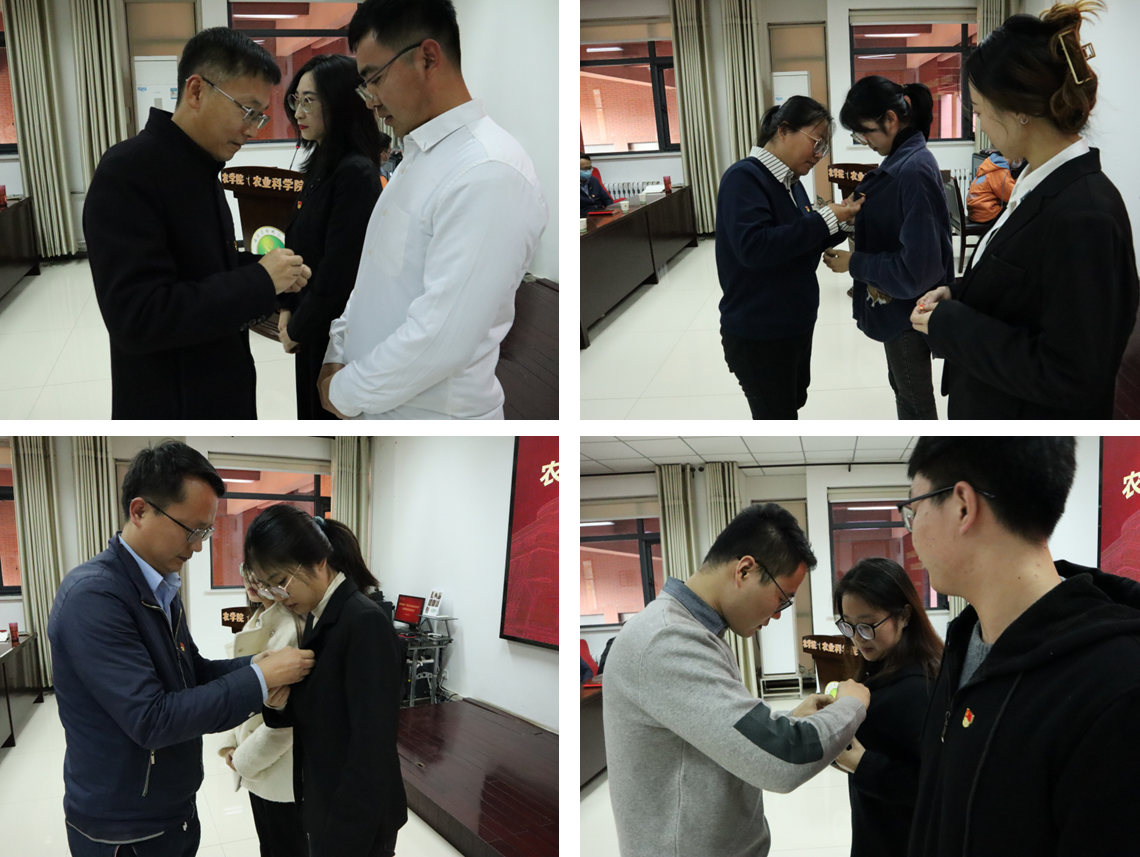 党支部书记给新发展学生党员佩戴党徽