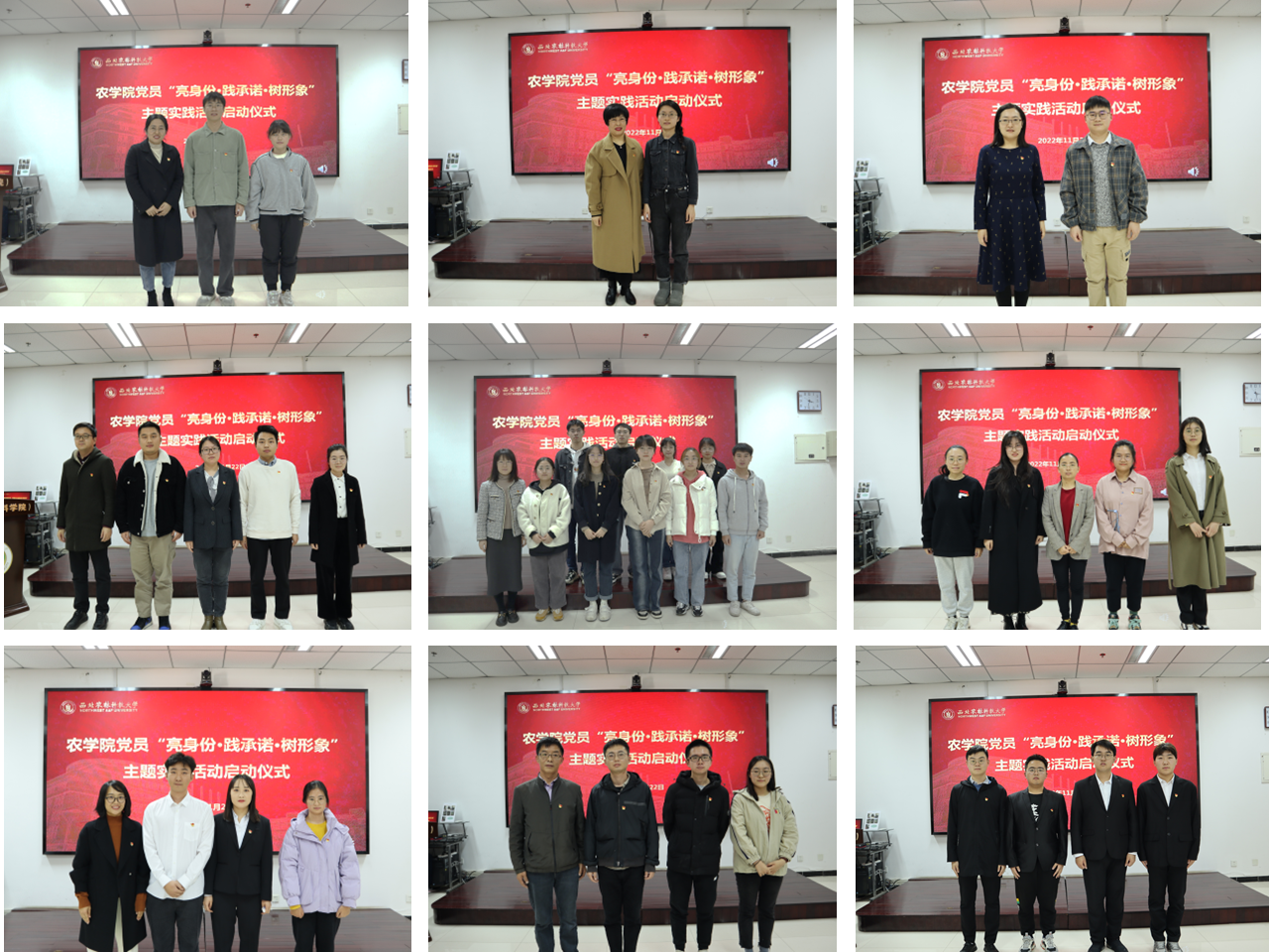 吴清华向新发展教师党员、新入职学工干部及新发展学生党员表示热烈的祝贺。她指出,“亮身份·践承诺·树形象”主题活动是加强全院学生党员教育和监督管理的一项重要工作,也是推动学院学生党建工作内涵式发展的必要措施。她向党员同志们提出三点要求,一要亮明身份,在工作、学习、参加党内活动等过程中处处亮身份,做到时时有激情、事事在状态;二要践行承诺,围绕承诺内容,对照四讲四有的标准进行自我监督,不断提升自我;三要树立形象,在一言一行上践行全心全意为人民服务的宗旨,发挥示范效应,自觉维护党的形象。吴清华强调,今年十月,党的二十大在京胜利召开。我们要坚持发扬斗争精神,弘扬伟大建党精神,立志做有理想、敢担当、能吃苦、肯奋斗、知农爱农,强农兴农的新时代青年,为祖国和人民贡献青春和力量。