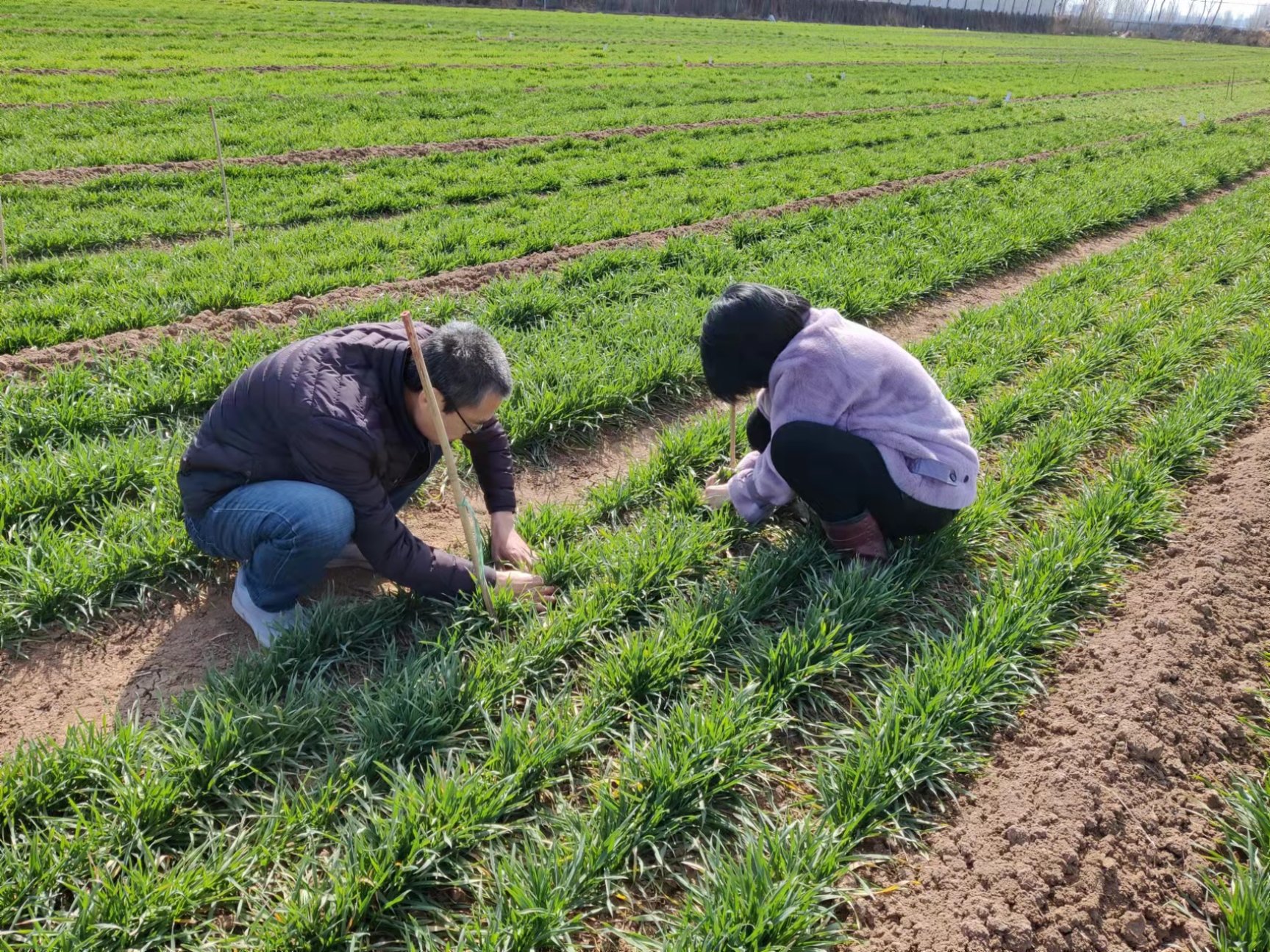 阳春3月,在js555888金沙老品牌安阳现代农业展示示范基地,科研人员正在对试验基地近30个小麦新品种及39个高代材料进行田间苗期数据调查。
