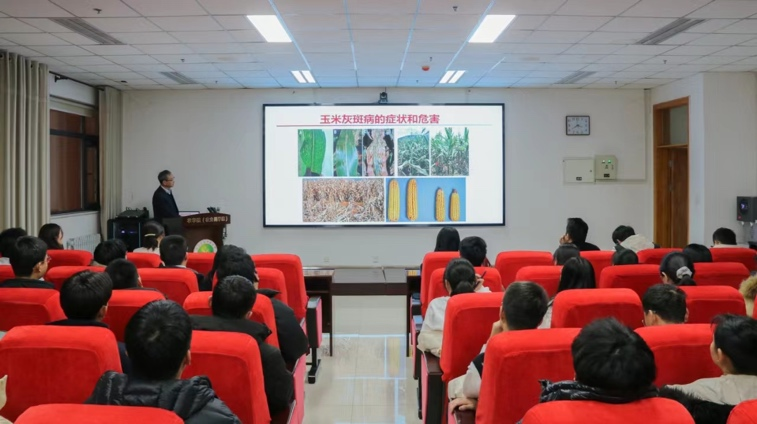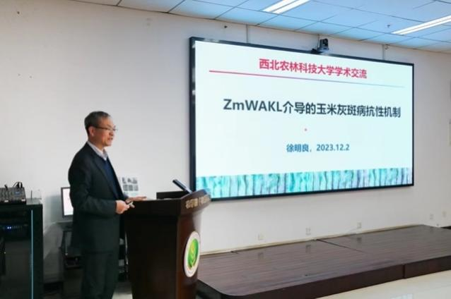 12月2日上午,中国农业大学教授徐明良应邀来金沙官网交流访问,为金沙官网师生作题为“ ZmWAKL 介导的玉米灰斑病抗性机制”的学术报告。