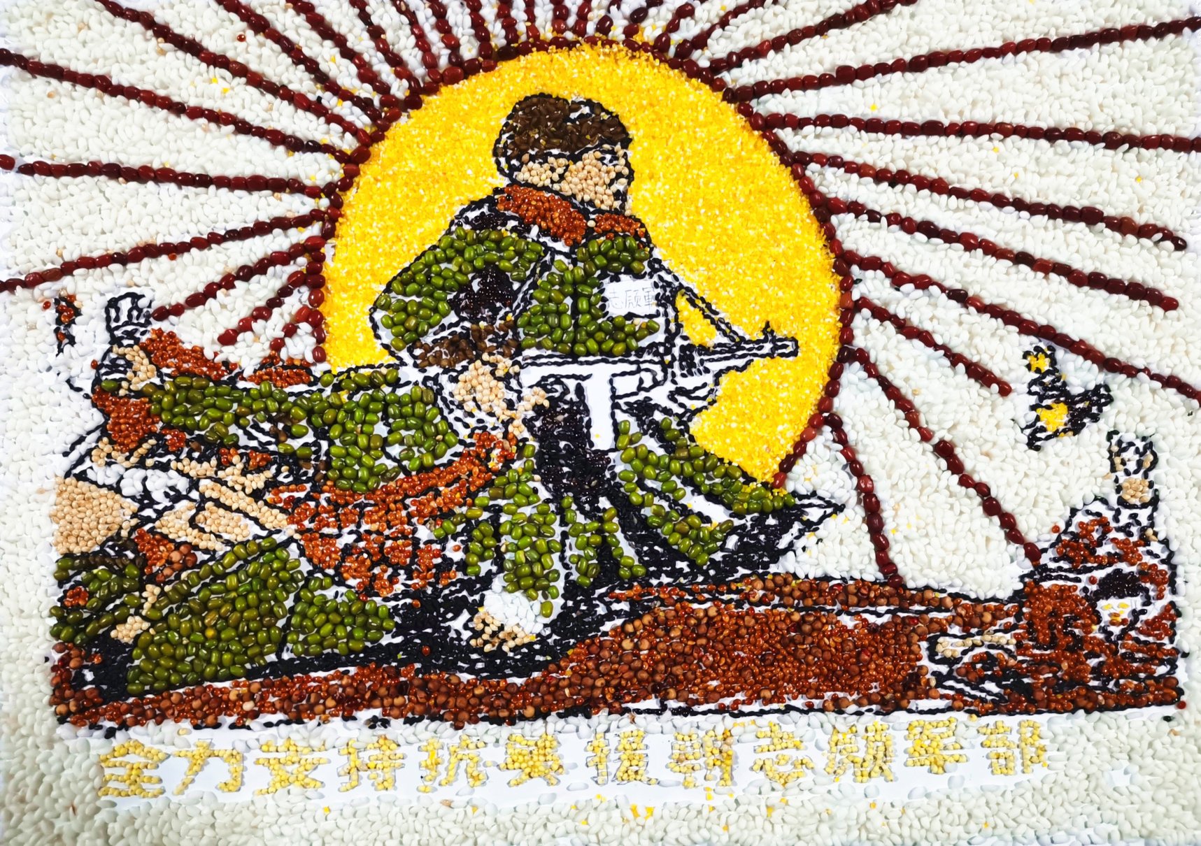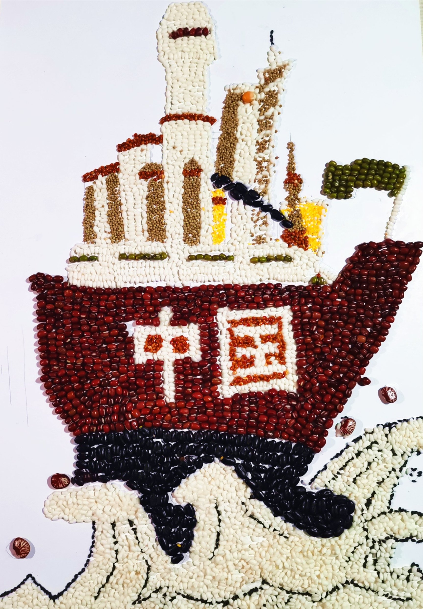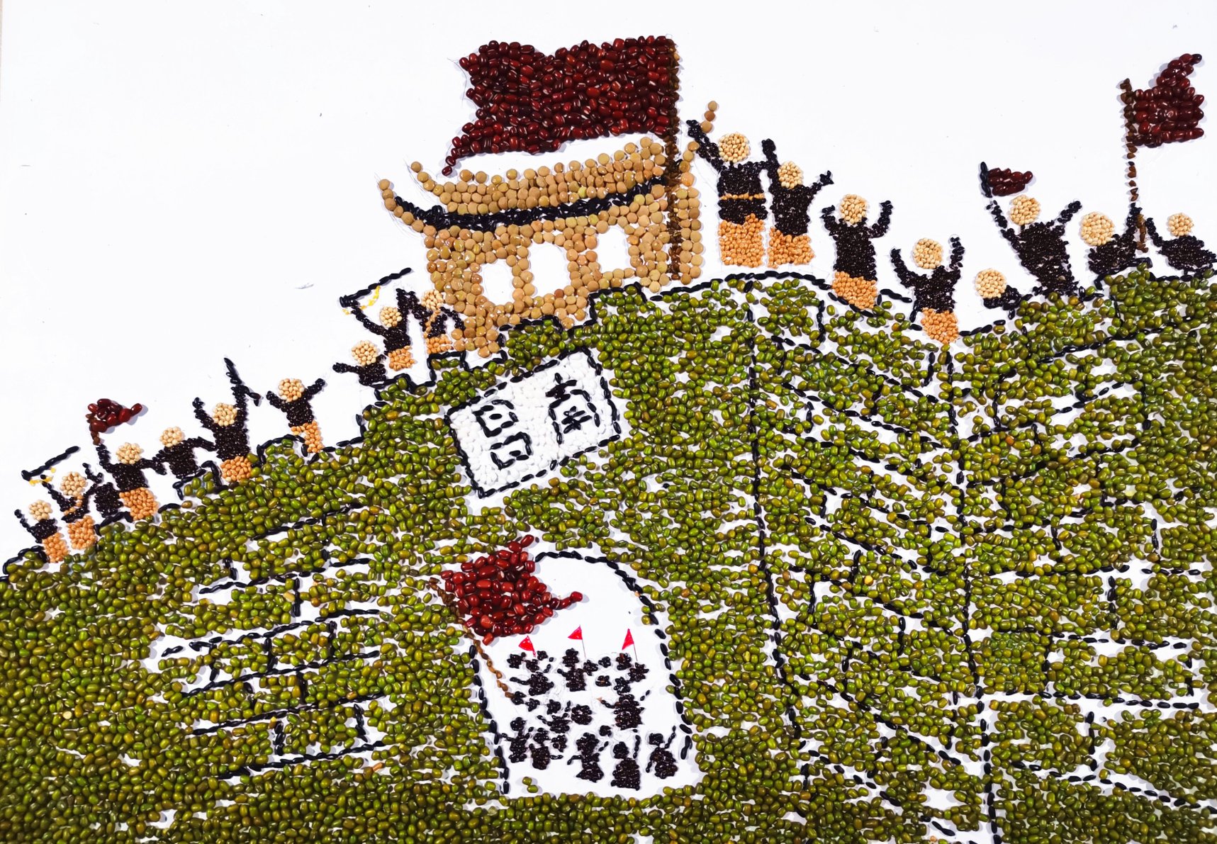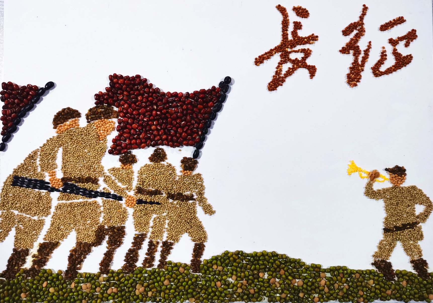 “共绘百年路·砥砺忆峥嵘”种子画设计大赛选取了建党百年以来十个重要的历史事件,同学们用红豆来渲染南昌起义的红旗猎猎,用糜子绘制出革命战士在长征路上的不屈身姿……从嘉兴南湖的一叶红船,到民族复兴的巍巍巨轮,十幅画作按照时间的顺序讲述出共产党波澜壮阔的百年征程,传达出历久弥新的百年初心。