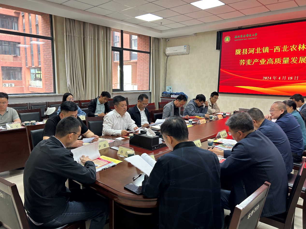为了推动陇县河北镇荞麦产业高质量发展,4月18日,陇县政协主席梁治军、河北镇党委书记闫军春等一行到金沙官网进行考察座谈,新农村发展研究院副处长韩虎群及金沙官网王东副院长、奚亚军教授、高小丽研究员、高金锋副教授、张超副教授、杨璞副教授参与座谈,会议由王东副院长主持。