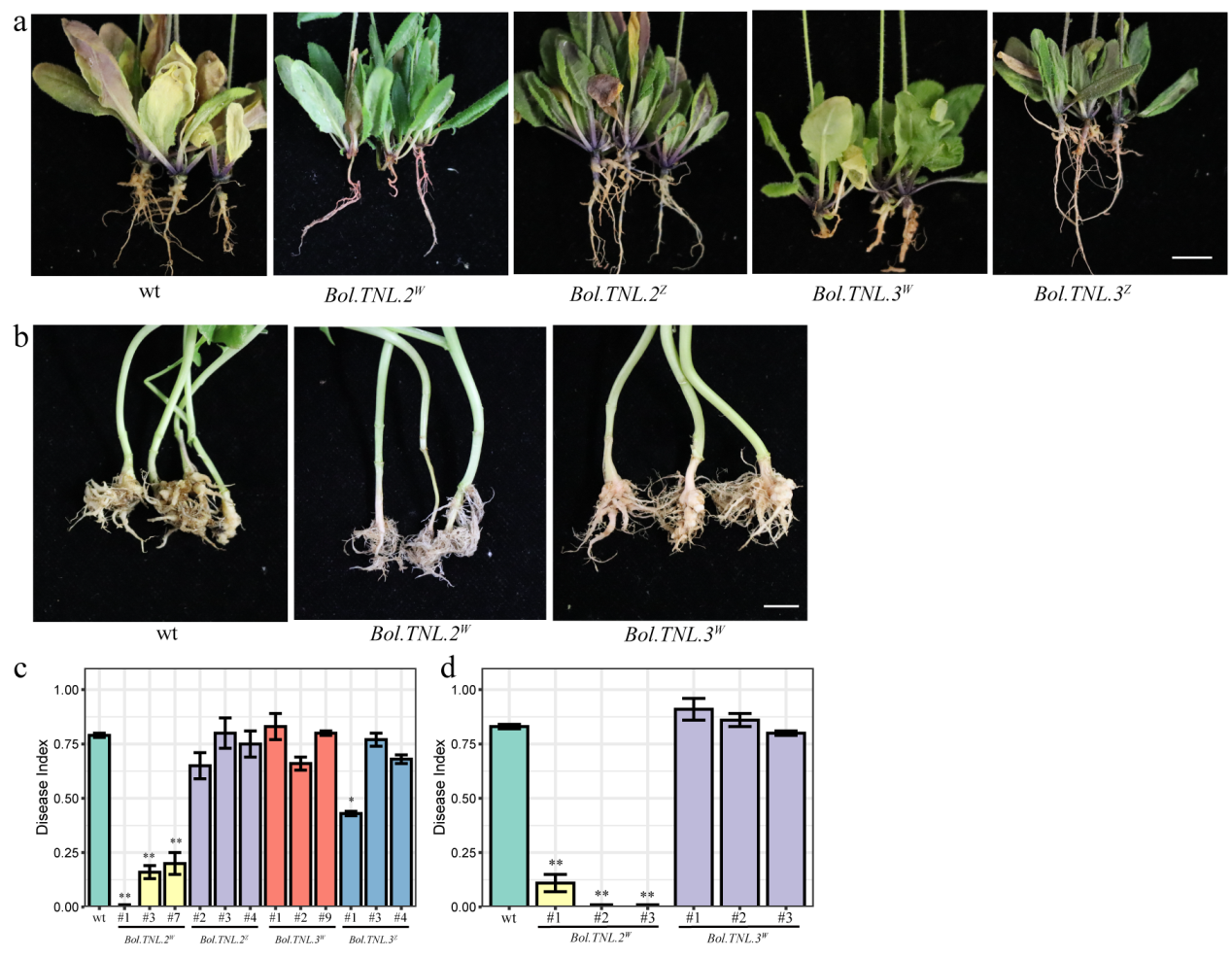 js555888金沙老品牌黄镇团队揭示甘蓝抗根肿病关键基因Bol.TNL.2的抗性机制