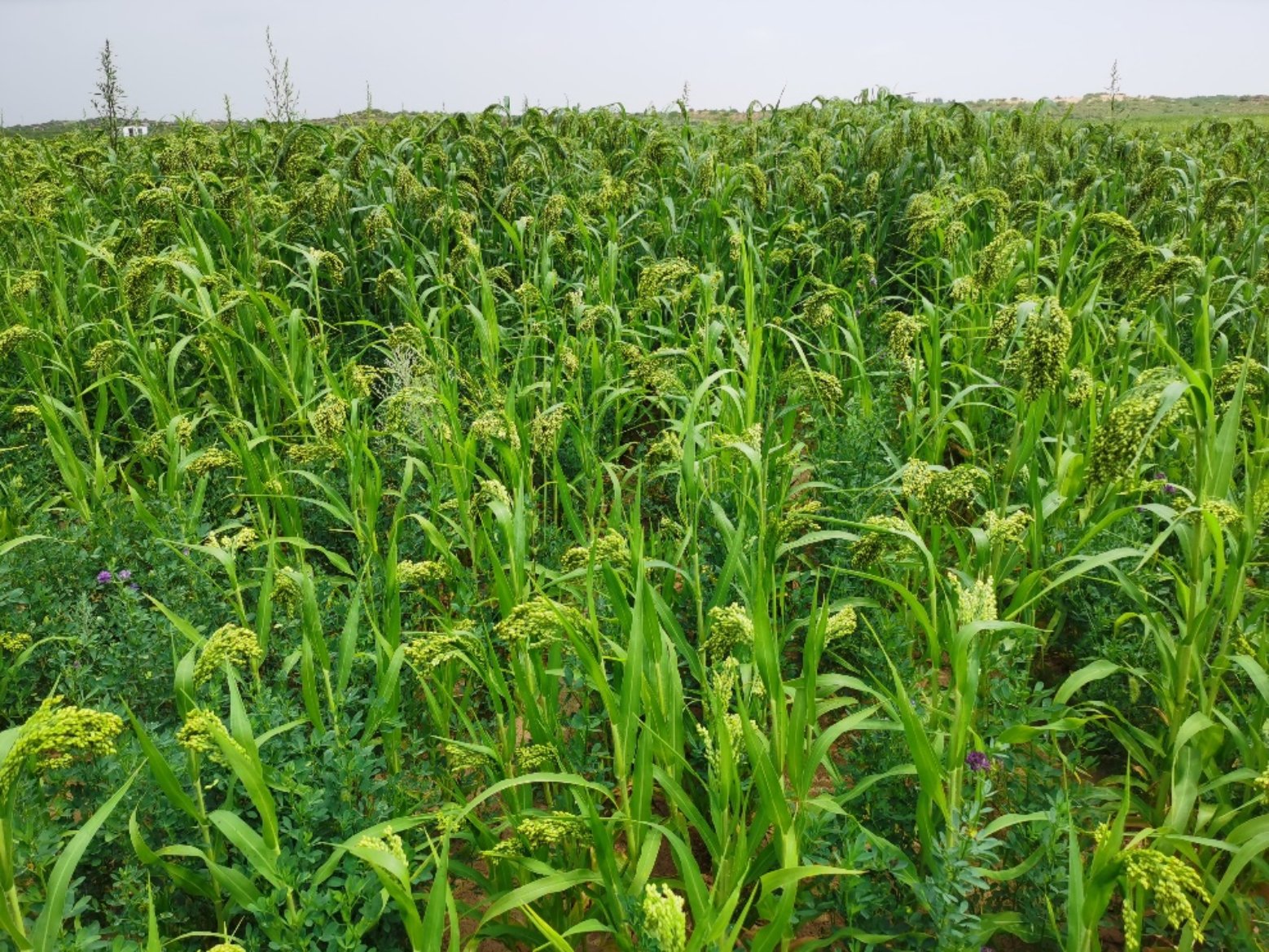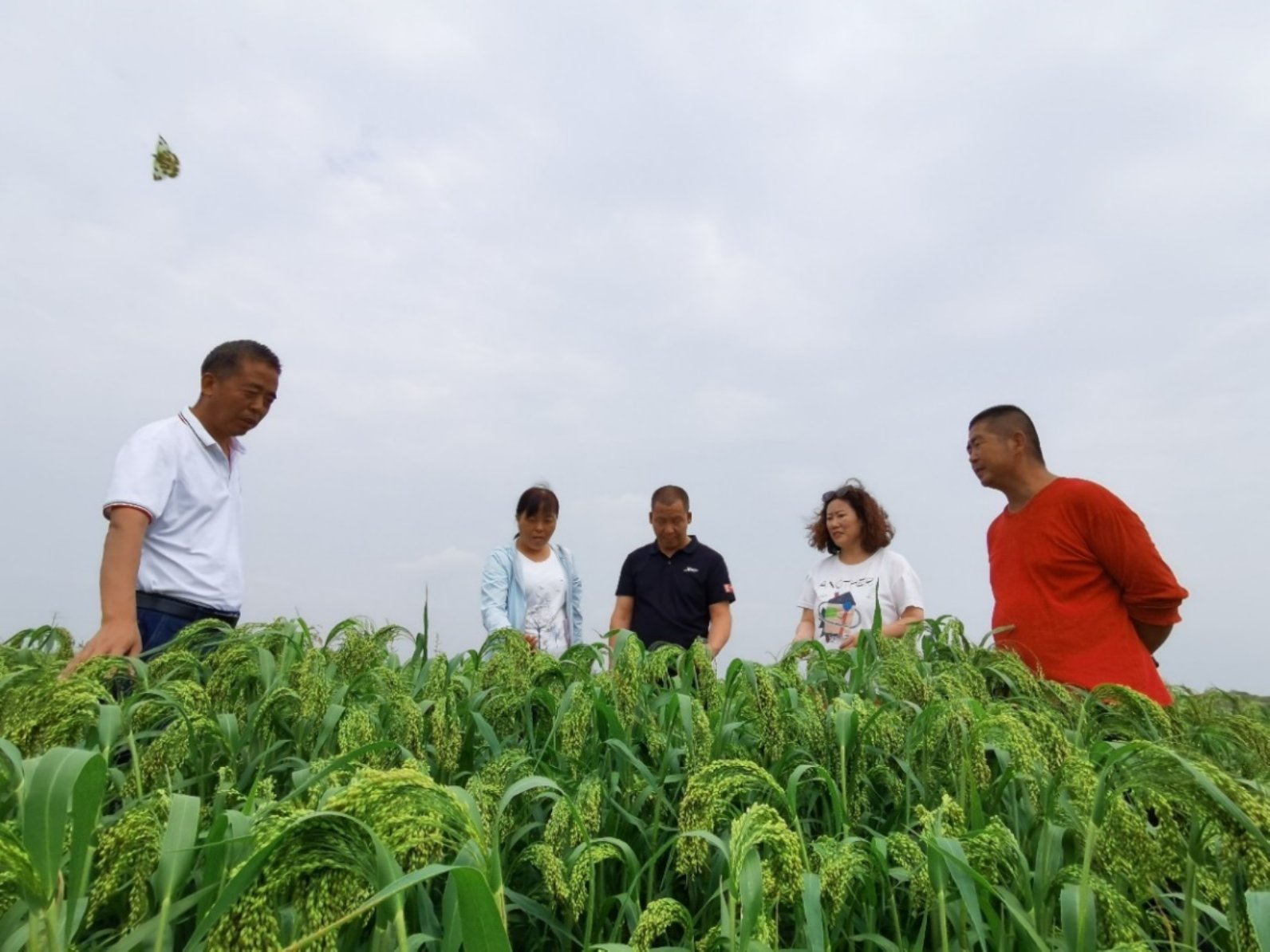 8月6日至7日,鄂尔多斯市科技特派员、js555888金沙老品牌冯佰利教授、高小丽研究员来到鄂尔多斯市乌审旗开展糜子产业调研和技术指导工作。乌审旗工信和科技局陈波局长、谷世红农艺师,乌审旗塔来乌素农牧业开发有限责任公司董事长萨日娜拉等参加了调研工作。调研组一行先后考察了乌审旗塔来乌素农牧业开发有限责任公司,观摩了糜子苜蓿混作种植模式、多功能富硒糜子示范田长势情况,针对田间生长情况和近期天气状况提出糜子中后期田间管理技术指导意见,现场指导种植户要及时采取灌水、叶面追肥和喷硒等措施促进糜子灌浆保丰收,并就“乌审大红糜子”品牌打造和产业提升进行了交流探讨。